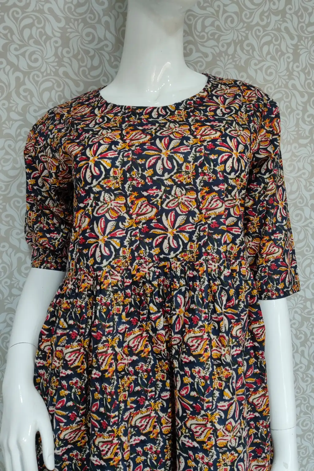 Be the first to review “Black Printed Empire-Waist Cotton Kurti with Multicolor Floral Pattern”