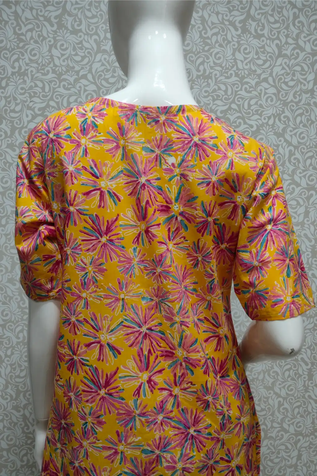 Be the first to review “Sunshine Yellow Cotton Kurti with Multicolor Floral Print & Striped Pants Set”